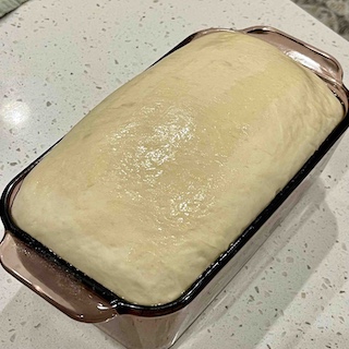 Punch down the dough, shape into a loaf, and place in a greased 8x4-inch loaf pan.